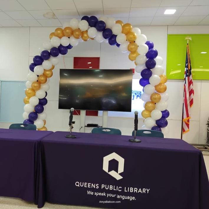 Logo Balloon Column & Garland / QUEENS PUBLIC LIBRARY